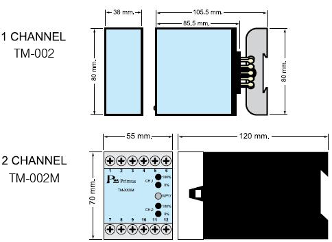 Kích thước bộ chuyển đổi tín hiệu điện áp Primus TM-002 / TM-002M